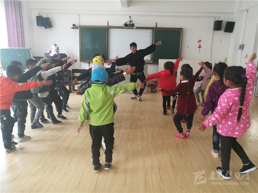 巴蘇給人的印象陽光、帥氣、極具親和力。此時的他正在操場上帶領(lǐng)著大班的孩子上體育課,活脫脫一個“孩子王”。