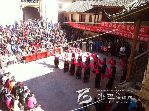 12月2日,康定縣捧塔鄉(xiāng)捧塔寺內(nèi)人頭攢動,熱鬧非凡,由康定縣旅游文化局組織的送文化下鄉(xiāng)惠民演出吸引了周邊的眾多群眾前來觀看。 演出在州歌舞團(tuán)演員歡快的舞蹈中拉開帷幕。一曲曲耳熟能詳?shù)母枨?、一支支熱情洋溢的舞蹈為農(nóng)牧民群眾送上了一份文化厚禮。演出結(jié)束,意猶未盡的捧塔村民說:“今天一大早我就等在這里,農(nóng)村的文化生活簡單枯燥,好久沒有看到這么精彩豐富的文藝節(jié)目了,它不但豐富了我們的文化生活,還宣傳了黨的惠民政策,這樣的方式比傳統(tǒng)的開會宣傳更能讓大家知曉、熟記各項富農(nóng)惠民政策,也更受大家歡迎,希望這樣的活動以后能多多舉辦。”圖為演出現(xiàn)場。(李瑤 攝影報道)