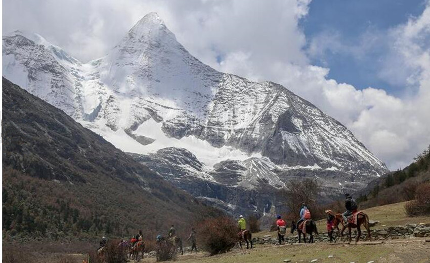 今年“五一”小長(zhǎng)假期間,陸續(xù)有游客來(lái)到亞丁游覽。(朱虹 攝)