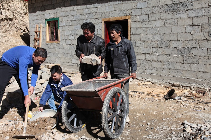 俗話說,一方水土養(yǎng)一方人,當(dāng)一方水土不能養(yǎng)活一方人時,移民搬遷就成了最好選擇。這個行動遲緩的中年男子名叫洛絨,今年48歲。他眼前的這幢建筑面積100平方米的磚混結(jié)構(gòu)單層房子,盡管室內(nèi)地面還沒灌注水泥,房內(nèi)還沒裝修,但他對即將入住新房的那份喜悅一覽無余:“你看,這房子的前面是河、后面是山,太陽一出來就能照著,住起來肯定舒服;這三間房子就有四個大窗戶,光線照得進(jìn)來,里面肯定亮堂;這一進(jìn)門就是客廳,兩邊各有一套大大的房間,裝修好后只要把家具家電一擺上,肯定漂亮;……”正當(dāng)他說得津津有味時,鄉(xiāng)上負(fù)責(zé)易地扶貧搬遷干部馬煜和包村干部鄭剛突然出現(xiàn)了他的眼前,他滿是感激地說:“其實,我知道你們都很忙,用不著隔三差五過來幫我,我保證十天之內(nèi)就把地面填平。況且再過幾天,我愛人就從山上挖蟲草回來了。有她打下手,兩個月內(nèi)我們一家人肯定就能住進(jìn)新房子啦!”