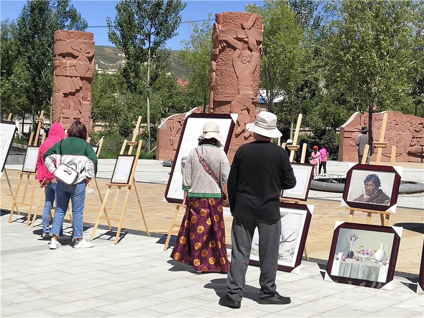 文藝展得到了廣大藝術愛好者的積極響應、參與和支持,共征集到精美作品189件展出,其中書法作品60件、繪畫作品69件、唐卡作品60件。作品內(nèi)容廣泛、立意新穎、主題突出,既有藝術性又有紀實性,富有感染力和表現(xiàn)力。
