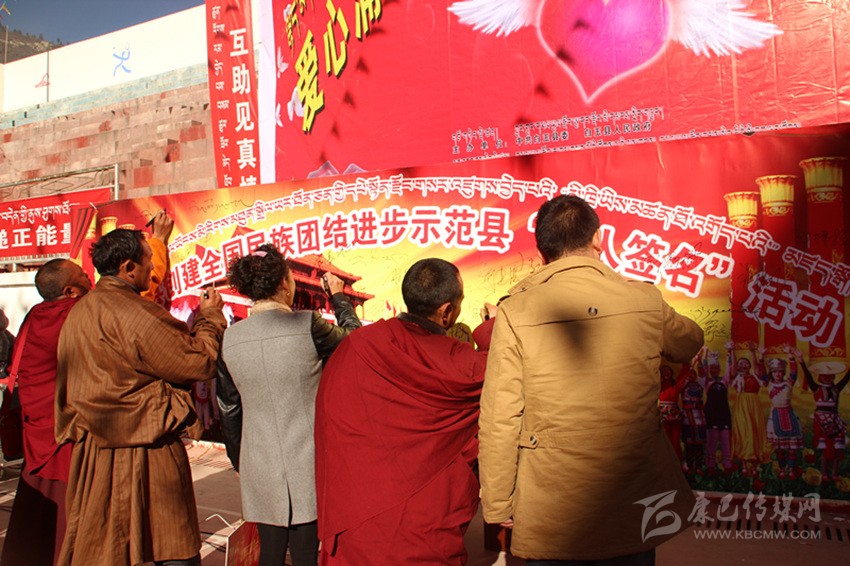 其實,在白玉,像澤稱降措這樣感人肺腑的故事絕非個案。采訪中,筆者細細梳理五年來白玉的創(chuàng)建舉措與成績,完全可以用“務實”“扎實”這四個字來形容。自2014年創(chuàng)建活動啟動以來,縣委、縣政府嚴格按照“三年創(chuàng)建、四年提升”要求,緊扣“八進活動、共建對子”兩個關鍵,聚焦“民族團結促發(fā)展、民族團結促穩(wěn)定、民族團結促民生”三大目標,采取“精準安排、精準施策、精心打造、精細管理”四項舉措,并通過層層簽訂目標責任書和層層落實創(chuàng)建標準、測評指標,進而形成了“黨委統(tǒng)一領導、黨政齊抓共管、部門各司其職、社會廣泛參與”的創(chuàng)建工作格局;采取“年度定方案、季度有督查、月月抓推進、層層重落實”的方式,通過召開專題會、動員會、現(xiàn)場會、督導會、匯報會等形式,抓問題、添措施、促整改、補短板、求提升,一系列動真碰硬的推進,使得創(chuàng)建工作由“虛”變“實”;按照“精準宣講、掛圖作戰(zhàn)、對單宣講、對村消號、定學式”的宣講思路,采取“縣到鄉(xiāng)、鄉(xiāng)進村、村入戶、寺廟與僧尼”四個面對面等方式,并結合常態(tài)化開展的“四下鄉(xiāng)”活動,廣泛學習宣傳黨的民族理論、宗教政策、法律法規(guī)以及各項惠農惠民政策。五年來,全縣累計出動宣講服務人員1180人次,開展宣講宣教、“四下鄉(xiāng)”活動以及民族團結“八進”活動多達988場次,覆蓋基層干部、農牧民群眾和及寺廟近8萬人次,發(fā)放各類宣傳資料2.3萬余份、圖書光盤4500余本(張),贈送各種書籍4130余冊,放映電影152場次;在主要街道、繁華路段、出租車頂屏、燈箱燈桿以及干線公路沿線堡坎,設置LED屏、宣傳牌、滾動標語和墻體標語,推送各類創(chuàng)建信息上萬余條,在各機關、單位、醫(yī)院、學校、寺廟、鄉(xiāng)鎮(zhèn)、村組(社區(qū))設置民族團結標語、宣傳櫥窗、展板和文化墻,推出各類宣傳欄2145個、宣傳展板 435個;在縣級宣傳平臺開設專欄,完成各類主題宣傳300余場次;舉辦創(chuàng)建“萬人簽名”、鍋莊節(jié)、演講比賽、籃球友誼賽、知識競賽、文藝演出等各類民族團結主題活動近20場,實現(xiàn)了創(chuàng)建宣講宣傳宣教全方位、多層面、立體式和廣覆蓋;切實將民族團結工作與脫貧攻堅、基層黨建、群眾工作、鄉(xiāng)村治理、依法治縣等有機結合,大力開展干群結對認親、干部聯(lián)寺聯(lián)僧、支部共建共創(chuàng)以及警民共建等活動;切實在廣大農牧民群眾、幫扶援建隊伍、宗教寺院、學校師生、企業(yè)以及部隊中發(fā)現(xiàn)典型、宣傳典型,進而在全縣上下形成了“學先進、趕先進、當標兵”的濃厚氛圍;采取政策傾斜、整合項目、配套資金等措施,狠抓示范點規(guī)范化建設。目前,全縣所有鄉(xiāng)(鎮(zhèn))、縣級黨政機關、武警部隊,45%以上的村(社區(qū))、企事業(yè)單位和寺廟已成為民族團結進步示范地區(qū)或示范單位;……精準發(fā)力、持續(xù)給力的創(chuàng)建活動,有效形成了創(chuàng)建活動“人人參與、人人推動、人人負責、人人共享”的喜人局面。