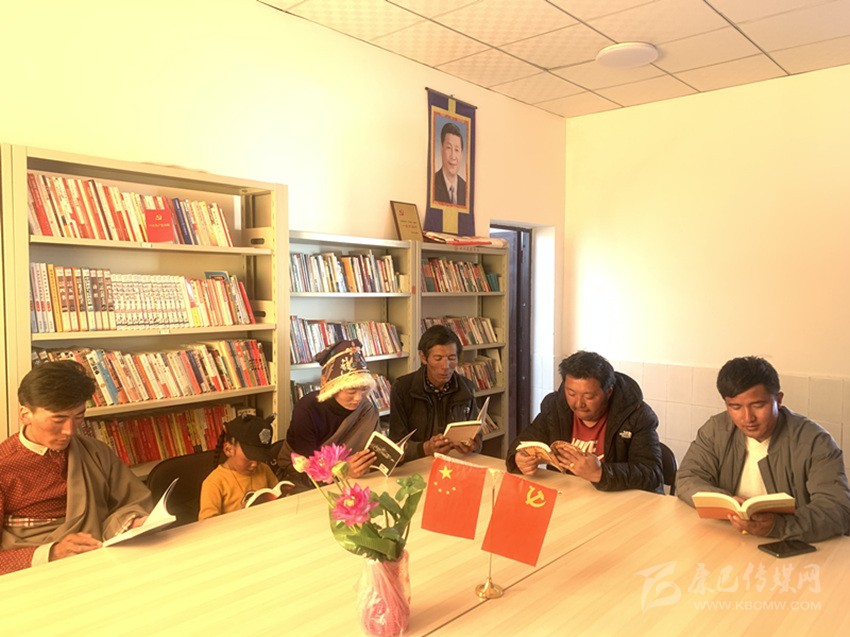 “平時(shí)只要有空,我們就到這里來聚會(huì),看看書、聊聊天,有時(shí)村里會(huì)組織大家集中收看宣傳黨委政府政策的宣傳片,讓我們能及時(shí)了解國家方針政策。”4月13日午飯后,色達(dá)縣大則鄉(xiāng)厚門村的文化活動(dòng)室,和往常一樣,又陸陸續(xù)續(xù)迎來三三兩兩的村民們。一樓的圖書室,幾位村民正在安靜地看書,有漢語的,也有藏語的,他們身后兩面的書架上,收藏了上萬本各類書籍,其中藏語書籍占了一半以上,還有一些光碟,都是歷次中央、省、州重大會(huì)議的宣講內(nèi)容。在二樓的會(huì)客室,49歲的村民擁巴和鄉(xiāng)親們正熱烈地聊著今年脫貧攻堅(jiān)的形勢(shì)。