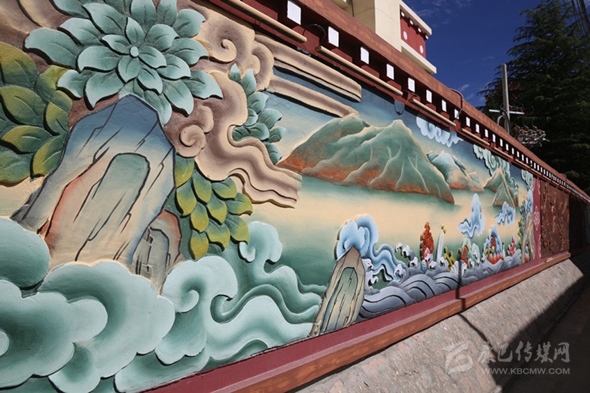 當(dāng)筆者一行走在巴塘縣城,墻體繪畫(huà)上“巴塘八景”躍然于上,“巴山積雪”“柳林較射”“桃園賞花”“板橋垂釣”“古桑抱石”“溫泉沐浴”“暖石回陽(yáng)”“老柳夾槐”色彩豐富、構(gòu)思精巧,平淡無(wú)奇的墻面因?yàn)橐环r活的繪畫(huà)變得生活,一面墻一幅畫(huà)一個(gè)故事。街頭巷尾,十字路口的“大鵬蓮花燈”“九眼天珠燈”“走馬燈”高高懸掛展示巴塘風(fēng)貌。以“茶馬古道”為主題打造的“最美古鎮(zhèn)”,悠悠古韻講巴塘故事,古色古香顯巴塘韻味……