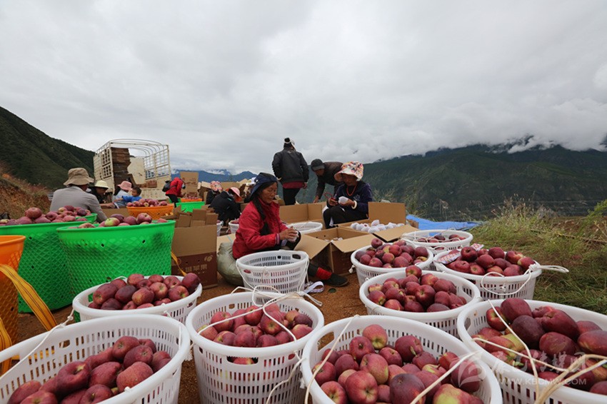 鄉(xiāng)城蘋果以色澤艷麗、香味濃郁、便于儲存而具有很好的市場前景。鄉(xiāng)城縣德園經(jīng)濟(jì)林果公司負(fù)責(zé)人周軍告訴筆者,共種植鄉(xiāng)城蘋果4000畝,今年有600畝掛果,產(chǎn)量達(dá)60萬斤、產(chǎn)值達(dá)180萬元;再過3年,4000多畝蘋果將進(jìn)入盛產(chǎn)期,年產(chǎn)量將達(dá)到320萬斤。原生態(tài)的鄉(xiāng)城“糖心蘋果”早已自帶“名片”,引來成都、重慶、深圳、昆明等地的企業(yè)上門預(yù)定,“鄉(xiāng)城蘋果俏得很,不愁銷路”。