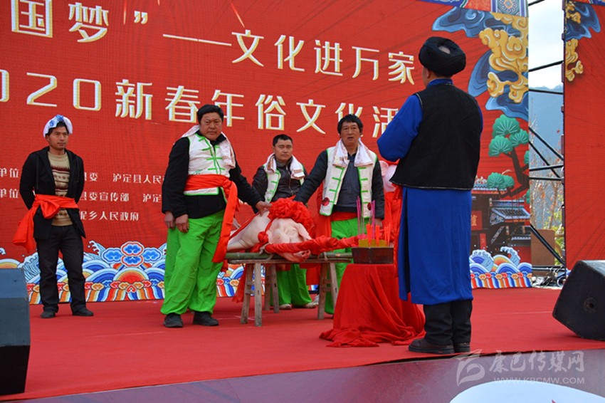 圖為瀘定縣年俗文化活動“年豬節(jié)”活動現場。