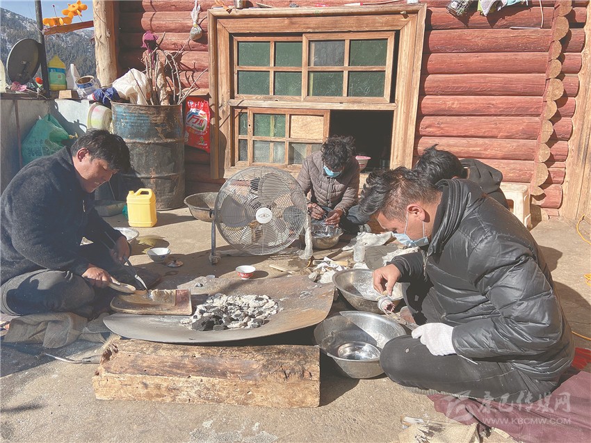 單真郎加正和學(xué)徒們一起制作藏刀。