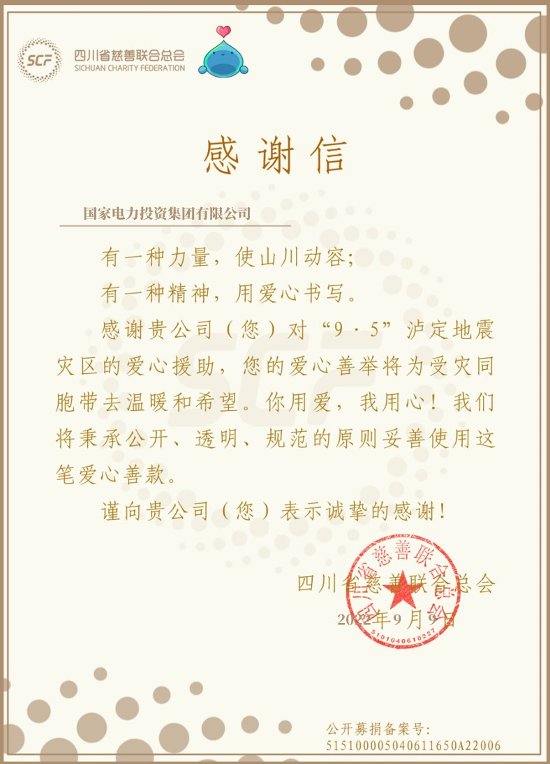 2022年9月5日12時52分,瀘定6.8級地震發(fā)生后,國家電投集團立刻向災(zāi)區(qū)捐款1000萬元,全力支援災(zāi)區(qū)救助和災(zāi)后重建,幫助災(zāi)區(qū)人民共渡難關(guān)。面對災(zāi)情,國家電投甘孜興川公司迅速啟動地震應(yīng)急響應(yīng),做好人員、設(shè)備詳細排查,防范塌方、泥石流等次生災(zāi)害,保持安全生產(chǎn)穩(wěn)定,千方百計保安全、保供電,充分發(fā)揮央企能源供應(yīng)“穩(wěn)定器”和“壓艙石”作用,助力災(zāi)區(qū)盡快恢復生產(chǎn)生活秩序。統(tǒng)籌調(diào)度各方力量,克服疫情和余震影響,緊急采購災(zāi)區(qū)急需的發(fā)電機、電筒等設(shè)備第一時間送達災(zāi)區(qū),支援應(yīng)急。在得知瀘定縣得妥鎮(zhèn)電力系統(tǒng)受災(zāi)嚴重急需救援力量后,公司迅速成立抗震救災(zāi)保供黨員先鋒隊,從正在緊張施工的興川實證光伏電站抽調(diào)精銳力量26人奔襲700公里,抵達瀘定縣得妥鎮(zhèn),緊急馳援地方搶險救災(zāi)工作,拆除100多戶危房電源,恢復2個行政村460戶村民安全用電,贏得當?shù)卣蜕鐣鹘缫恢潞迷u。