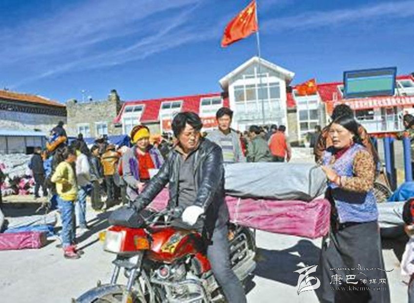 11月26日,康定縣塔公鄉(xiāng)江巴村受災(zāi)村民將在村委會(huì)領(lǐng)到的救災(zāi)物資拉回家。 吳傳明 攝
