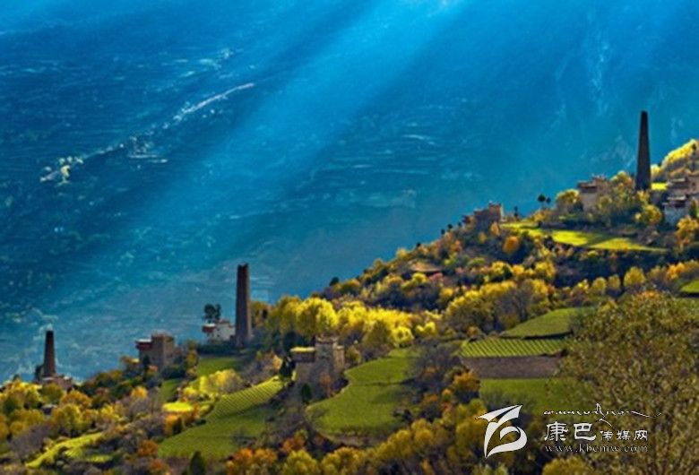 “甲居”,藏語是百戶人家之意。整個山寨依著起伏的山勢迤邐連綿,在相對高差近千米的山坡上,一幢幢藏式樓房灑落在綠樹叢中?;蛐橇_棋布,或稠密集中,或在高山懸崖上,或在河壩綠茵間,不時炊煙裊裊、煙云繚繞,與充滿靈氣的山谷、清澈的溪流、皚皚的雪峰一起,將田園牧歌式的畫卷展示在人們眼前,以一種藝術品的形態(tài)存在。