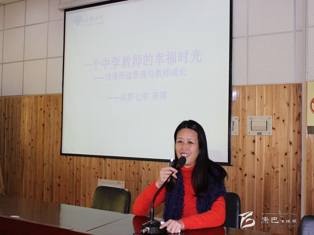 活動(dòng)中,成都七中網(wǎng)校教師分別與康定中學(xué)網(wǎng)課班(云班)教師、學(xué)生開展了交流、觀摩教學(xué)等活動(dòng)。成都七中優(yōu)秀政治教師、班主任李萍還為全校教師作了一堂題為《一個(gè)中學(xué)教師的幸福時(shí)光──淺談班級管理與教師成長》的專題講座。講座中,李萍老師以米歇爾訪問七中以及旅美感受為楔子,結(jié)合自己的教育經(jīng)驗(yàn)、親身經(jīng)歷、人生閱歷、工作所得,對班級管理及教師成長進(jìn)行了深入淺出的詮釋,讓全體聽課教師普遍感覺受益非淺。