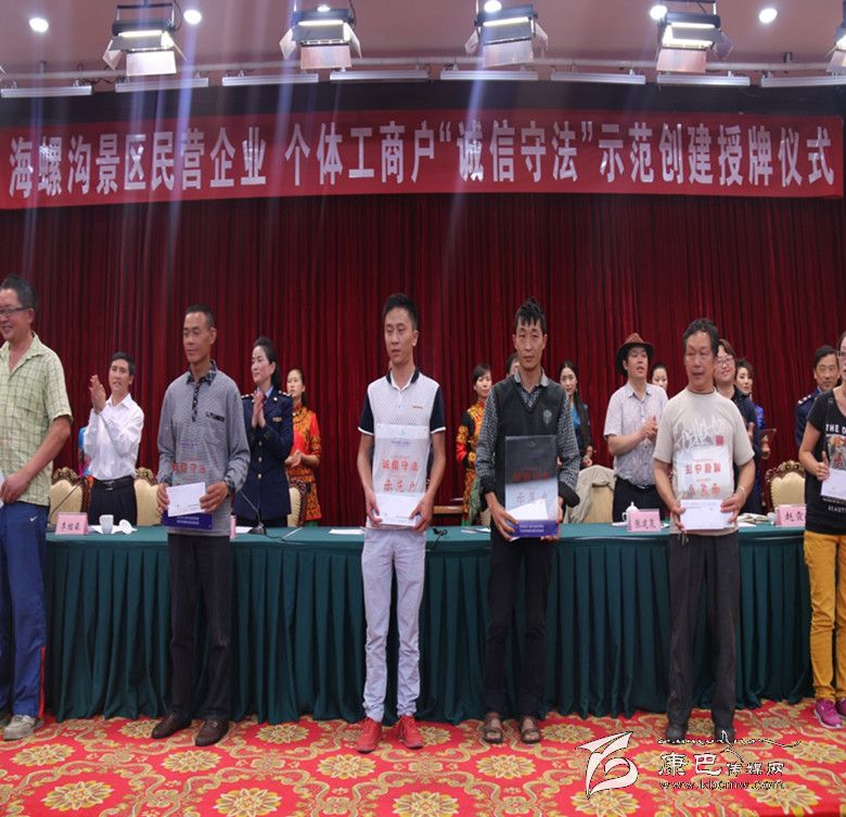 對公示無異議的178戶“誠信守法”示范創(chuàng)建戶命名授牌,由州工商局、海螺溝管理局授予甘孜州海螺溝景區(qū)"誠信守法示范戶",并頒發(fā)牌匾。 被授予“誠信守法示范戶” 178戶商家莊嚴(yán)宣誓:自愿申報(bào)成為“誠信守法”示范企業(yè)(個(gè)體工商戶),一定信守承諾、珍惜榮譽(yù),將“誠信”作為立業(yè)、興業(yè)的基石和名片,崇尚法律、敬畏法律,依法經(jīng)營。同時(shí),在“誠信守法”示范創(chuàng)建承諾書上莊重地簽下自己的名字。