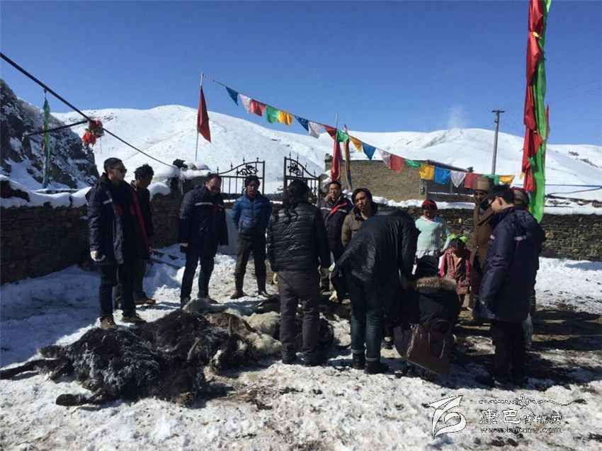 中國人保在塔公檢查因雪死亡牦牛。