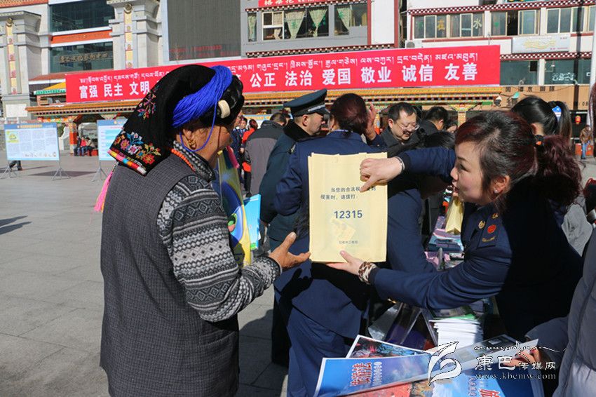 活動(dòng)現(xiàn)場(chǎng),中石油公司職工開展了“中石油加油站點(diǎn)質(zhì)量、計(jì)量服務(wù)誠(chéng)信經(jīng)營(yíng)承諾”活動(dòng)。州工商局的工作人員現(xiàn)場(chǎng)為市民講解新《中華人民共和國(guó)消費(fèi)者權(quán)益保護(hù)法》的亮點(diǎn)是什么、怎樣維權(quán)等知識(shí)。州煙草公司、康定市食品藥品工商質(zhì)監(jiān)局在廣場(chǎng)上設(shè)立了假冒偽劣商品展示區(qū),通過(guò)現(xiàn)場(chǎng)講解讓消費(fèi)者提高辨假識(shí)劣的能力。圖為宣傳活動(dòng)現(xiàn)場(chǎng)工商部門工作人員現(xiàn)場(chǎng)為市民講解。