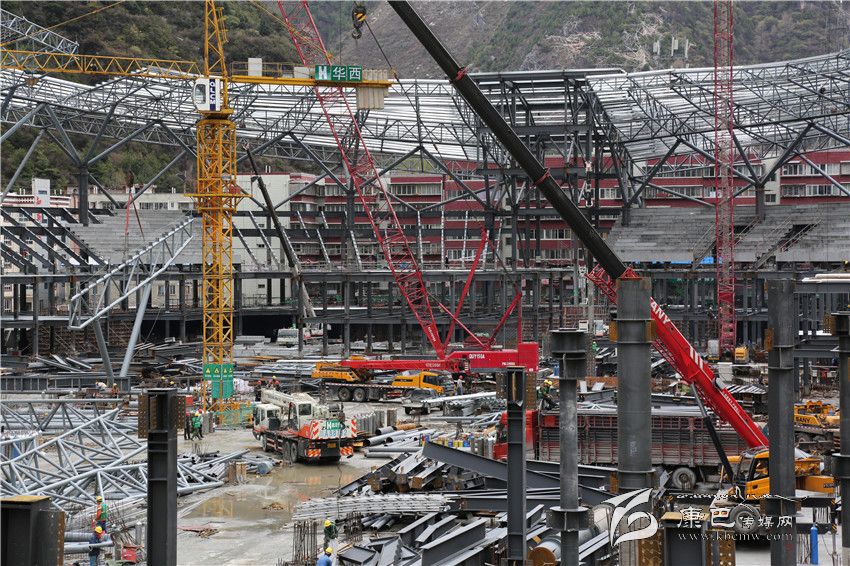 從規(guī)劃上看,高大上的新北門體育場(chǎng)堪稱甘孜州的“鳥巢”。由四川省第十三建筑公司承建的康定北門體育場(chǎng)改造工程,工程總投資2.4億元。截止目前,已完成投資1.4億元。停車場(chǎng)和看臺(tái)已初具規(guī)模;95%的鋼材已運(yùn)達(dá)建設(shè)現(xiàn)場(chǎng)。據(jù)工程負(fù)責(zé)人介紹,北門體育場(chǎng)改造工程每天有300多人在施工,預(yù)計(jì)7月初大部分工程可以完工。