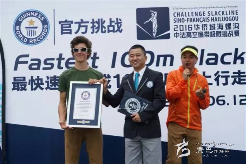 6月11日“2016華僑城海螺溝高空扁帶極限挑戰(zhàn)賽”上,法國選手Nathan Paulin以零失誤的成績成功完成了海拔3600米、長度820米高空扁帶極限挑戰(zhàn),完成了一次驚艷視覺、顛覆想象、燃爆心跳的極限之旅,創(chuàng)造了世界最高海拔,最長距離的高空扁帶運動的東方奇跡,被譽為“北緯30°的云端行走”。次日,法國選手Lucas Milliard在海螺溝大橋下以1分59秒73的成績創(chuàng)造了最快速度完成100米扁帶上行走吉尼斯世界紀錄,成為這項吉尼斯世界紀錄的締造者。從此,他的名字隨著中國四川甘孜海螺溝一起被整個世界所記錄。