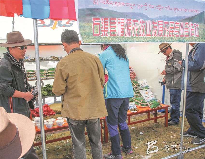 8月3日是石渠縣帳篷節(jié)的最后一天,清晨的陽光透過炊煙傾灑在草原千余頂帳篷上,40多歲的藏族漢子嘎戎從生活區(qū)的帳篷里出來,走向不遠(yuǎn)的太陽部落帳篷商貿(mào)城集市。那里安扎著400多頂帳篷,有商戶370家,周邊還有50多個流動的小商販。嘎戎所在的石渠縣福源農(nóng)牧業(yè)發(fā)展農(nóng)民合作社就是其中的一家參展商。從帳篷節(jié)開始,嘎戎就和其它5個人輪流值守這個他們倍加珍惜的展位,那是他們合作社自今年4月份成立至今第一次在如此重大的場合中露面,經(jīng)過這次檢驗,他們對自己的產(chǎn)品更加有信心。駐真達(dá)村第一書記祝修濤告訴記者,短短一個星期,合作社展售的糌粑、人參果、奶渣近2000斤,銷售額達(dá)4萬多元。這個農(nóng)民專業(yè)合作社以扶貧為己任,從建設(shè)種植基地到水磨房加工投入了200多萬元,全村50戶村民參與,合作社將原料統(tǒng)一發(fā)給村民加工,再統(tǒng)一收起來,統(tǒng)一包裝銷售。祝修濤說,社里的產(chǎn)品剛開始只是在當(dāng)?shù)爻鍪郏m然投入大但產(chǎn)量不敢做大,這次有這個平臺得到了市場的認(rèn)可,他們對合作社的發(fā)展充滿了信心。祝修濤,作為該村的第一書記,他要帶領(lǐng)著這個合作社好好規(guī)劃、大干一場。