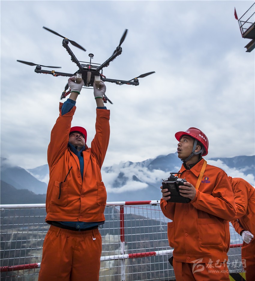 無人機(jī)將小繩送到對岸,工作人員再利用小繩拉大繩,最后把鋼繩拉過大渡河架設(shè)牽引系統(tǒng)。