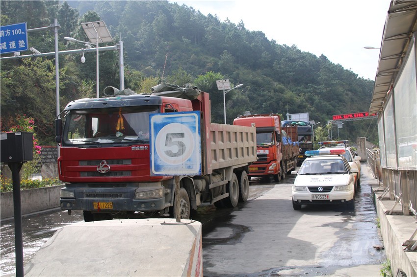 去年10月21日,全國(guó)將執(zhí)行新的貨運(yùn)車裝載標(biāo)準(zhǔn),將降低貨車運(yùn)載量。20日,瀘定檢測(cè)站迎來(lái)了大貨車運(yùn)輸高峰,當(dāng)天通過瀘定檢測(cè)站的進(jìn)州貨車就高達(dá)953輛,陡然增加的車流量,讓瀘定檢測(cè)站執(zhí)法人員忙得不可開交。凌晨1點(diǎn)左右,因距離檢測(cè)站數(shù)公里外道路正在施工,造成交通大面積擁堵。盡管不在工作職責(zé)范圍內(nèi),瀘定檢測(cè)站除值班人員留守外,交通路政、運(yùn)管、公安交警、特警全員上陣疏導(dǎo)交通?;謴?fù)通行時(shí),已經(jīng)是凌晨3點(diǎn)過。對(duì)于這樣的“家常便飯”,執(zhí)法人員已經(jīng)司空見慣。“不能在檢測(cè)站周邊造成交通擁堵,這是我們的職責(zé)”。