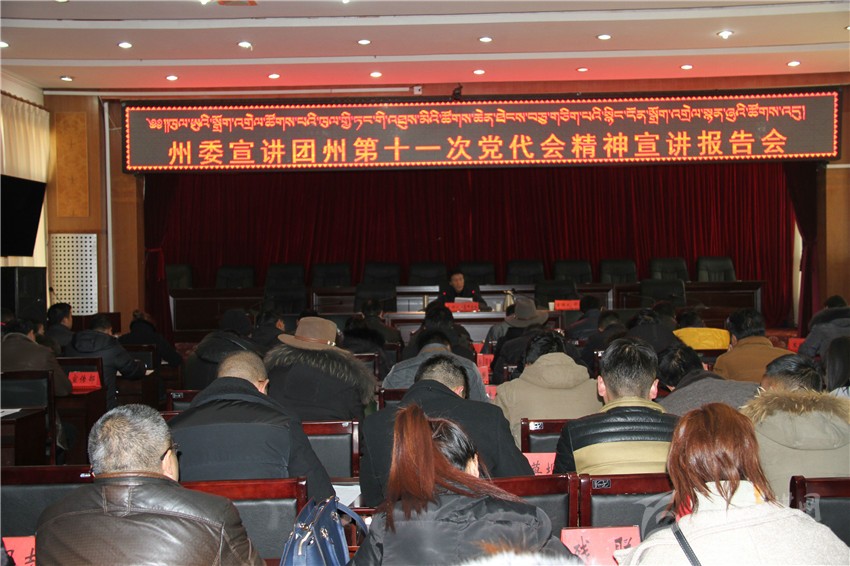 會(huì)上,黃虎彪以州委書記劉成鳴在州第十一次黨代會(huì)上的報(bào)告為主題,對(duì)州第十一次黨代會(huì)精神作了系統(tǒng)全面宣講。對(duì)會(huì)議的基本情況、主要成果、主要內(nèi)容、重要意義作了系統(tǒng)說明,并結(jié)合我州實(shí)際從過去五年我州發(fā)展的主要成果和基本經(jīng)驗(yàn)、當(dāng)前我州面臨的基本形勢(shì)、今后五年我州的工作思路和奮斗目標(biāo)、繼續(xù)堅(jiān)持全面從嚴(yán)治黨等方面對(duì)黨代會(huì)精神作了系統(tǒng)全面解讀。黃虎彪說:過去五年是我州發(fā)展進(jìn)程中綜合實(shí)力提升最快、基礎(chǔ)設(shè)施改善最大、民生改善最好、群眾得到實(shí)惠最多的五年;當(dāng)前面臨的形勢(shì)時(shí)隨著國(guó)家區(qū)域總體發(fā)展戰(zhàn)略的深入實(shí)施,新一輪西部大開發(fā)政策的全面落實(shí),特別是中央第六次西藏工作座談會(huì)出臺(tái)支持藏區(qū)經(jīng)濟(jì)社會(huì)發(fā)展和長(zhǎng)治久安的意見,為我州加快發(fā)展提供了強(qiáng)大的政策支持、項(xiàng)目支持和資金支持;今后五年的目標(biāo)是全面消除絕對(duì)貧困,18個(gè)縣(市)全部“摘帽”,1360個(gè)貧困村全部退出,19.74萬貧困人口全部脫貧,貧困人口發(fā)展能力不斷增強(qiáng)。城鄉(xiāng)居民人均可支配收入接近全省平均水平,差距明顯縮小,中等收入人口比重上升。