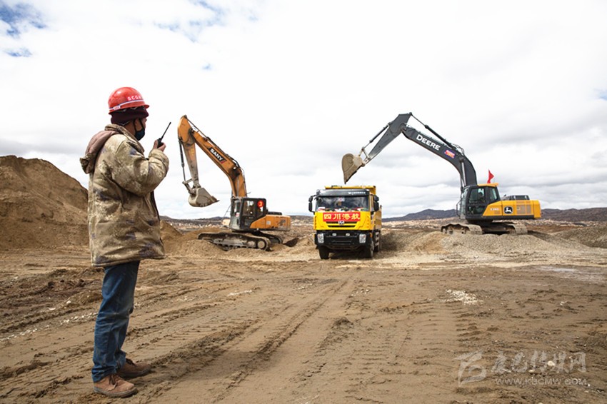 在四川省稻城縣海子山高海拔宇宙線觀測(cè)站建設(shè)現(xiàn)場(chǎng),工人們?cè)谑┕ぁ?/span>