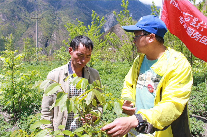 田疇織錦繡,沃野好風(fēng)光。4月22日,康定市金湯鎮(zhèn)先鋒二村核桃種植基地里熱鬧非凡,來自四川農(nóng)業(yè)大學(xué)、省林科院的專家組正在給當(dāng)?shù)厝罕娺M(jìn)行農(nóng)業(yè)技術(shù)培訓(xùn)。新品種栽培模式、新優(yōu)品種介紹、土肥水管理和病蟲害防治……一項(xiàng)項(xiàng)種植戶所需的實(shí)用技術(shù)在田間地頭進(jìn)行面對面手把手的指導(dǎo)和交流。