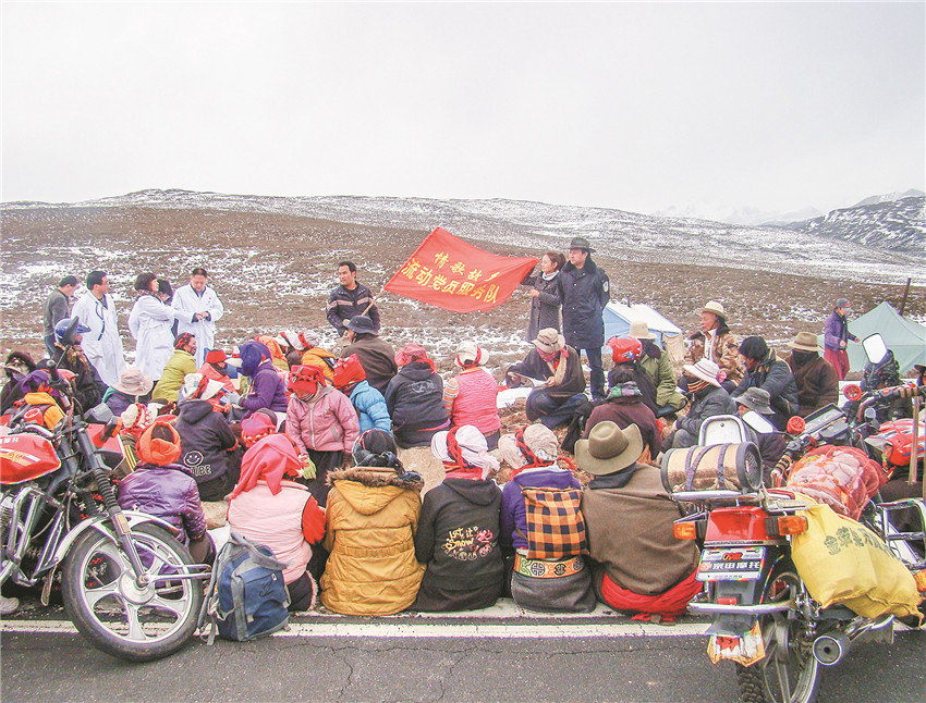 海拔四千米的蟲草山上,也有流動黨員服務隊的身影。
