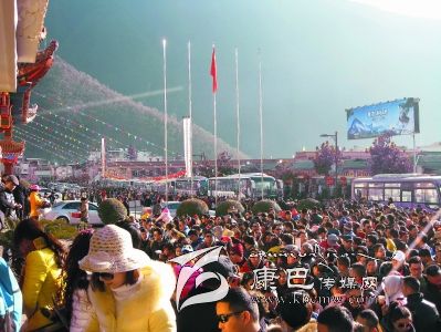 海螺溝景區(qū)管理局工作人員告訴記者,與很多著名旅游景點相比,從各項數(shù)據(jù)來看,海螺溝景區(qū)正躋身為廣大游客春節(jié)旅游的首選地。在張燈結(jié)彩的磨西鎮(zhèn)上,記者看到各大商鋪、餐館均在營業(yè),大批游客在街道上來往穿梭,景區(qū)觀光車正搭載著一批批游客前往景區(qū),而各種自駕游的車輛則滿滿停放在專門的停車場內(nèi)。