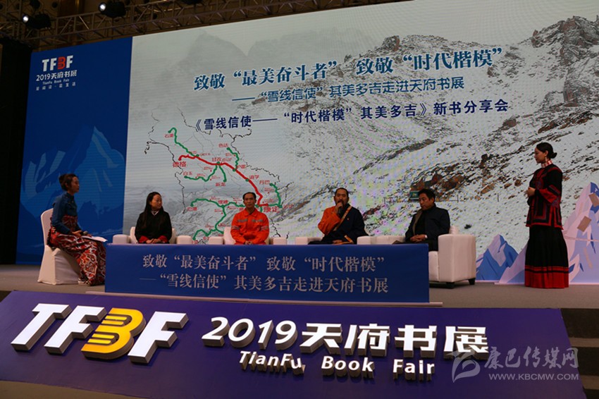 圖為本網(wǎng)兩名女記者撰寫的《雪線信使——“時(shí)代楷模”其美多吉》新書分享會現(xiàn)場。