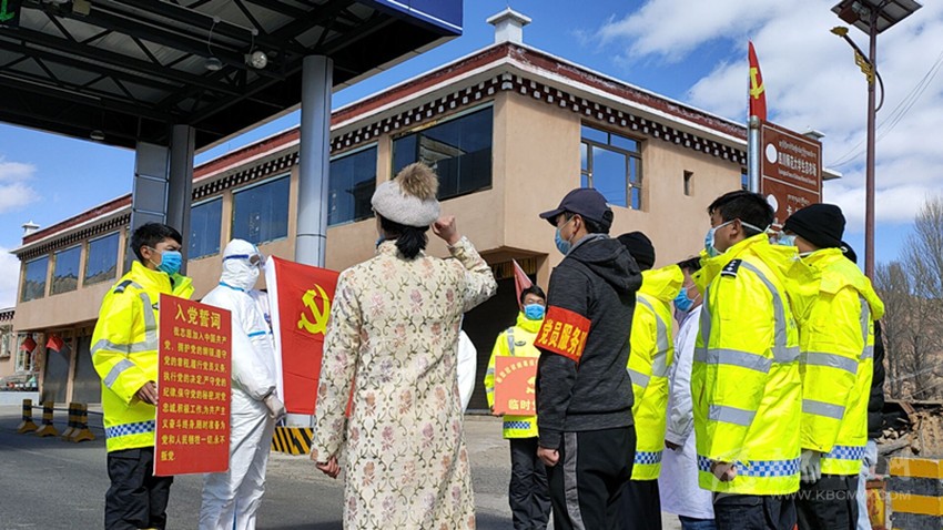 “我志愿加入中國共產(chǎn)黨,擁護(hù)黨的綱領(lǐng),遵守黨的章程……”2月1日,在海拔4200米的理塘縣禾尼檢疫站,醫(yī)生、民警中的共產(chǎn)黨員們重溫入黨誓詞,表達(dá)誓死戰(zhàn)勝新型肺炎疫情的決心。