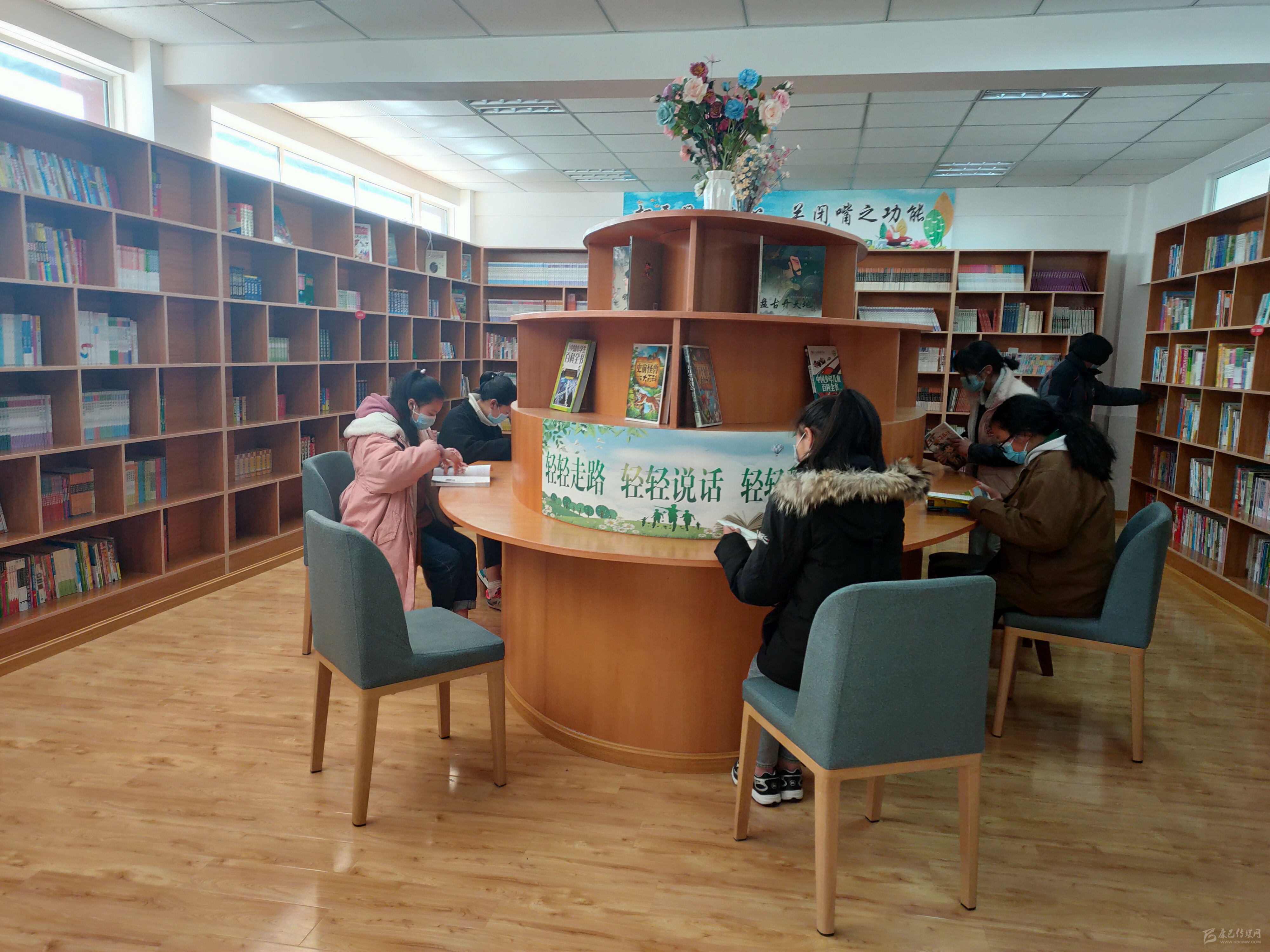 孩子們?cè)趫D書室看書。