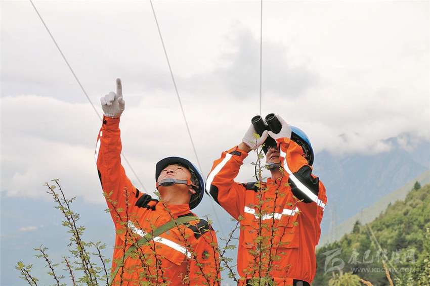 共產(chǎn)黨員服務(wù)隊正在巡視保電線路。