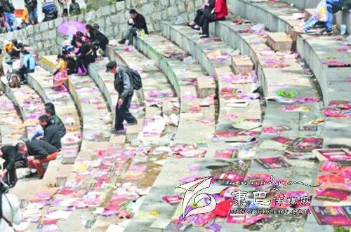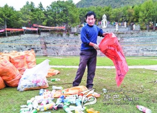 5月6日是康定縣一年一度“四月八”跑馬山國(guó)際轉(zhuǎn)山會(huì),上萬(wàn)人在跑馬山上祈福游玩。5月7日在一家爆料網(wǎng)站上一位網(wǎng)友發(fā)布了一篇名為《甘孜康定跑馬山萬(wàn)人轉(zhuǎn)山會(huì)后垃圾遍野》的微博。微博原文中說(shuō):“2014年05月06日,四川省甘孜藏族自治州,滿負(fù)荷的垃圾桶。跑馬山景區(qū)垃圾遍野。當(dāng)天是農(nóng)歷四月八轉(zhuǎn)山會(huì),景區(qū)免門(mén)票,至少有上萬(wàn)游客涌入景區(qū),參加轉(zhuǎn)山會(huì)活動(dòng)。”針對(duì)該網(wǎng)友爆料的情況記者走訪了康定跑馬山景區(qū)。在景區(qū)現(xiàn)場(chǎng)記者的確見(jiàn)到大量的垃圾“橫尸遍野”。藍(lán)天白云、青青草地真可謂詩(shī)情畫(huà)意,可是眼前的美景卻被無(wú)數(shù)的垃圾破壞。不知何時(shí)起旅游、垃圾仿佛成了連體嬰兒,甩也甩不掉,什么時(shí)候長(zhǎng)假、旅游與垃圾才能隔離開(kāi)來(lái)呢?帶著疑問(wèn)記者采訪了景區(qū)相關(guān)負(fù)責(zé)人。