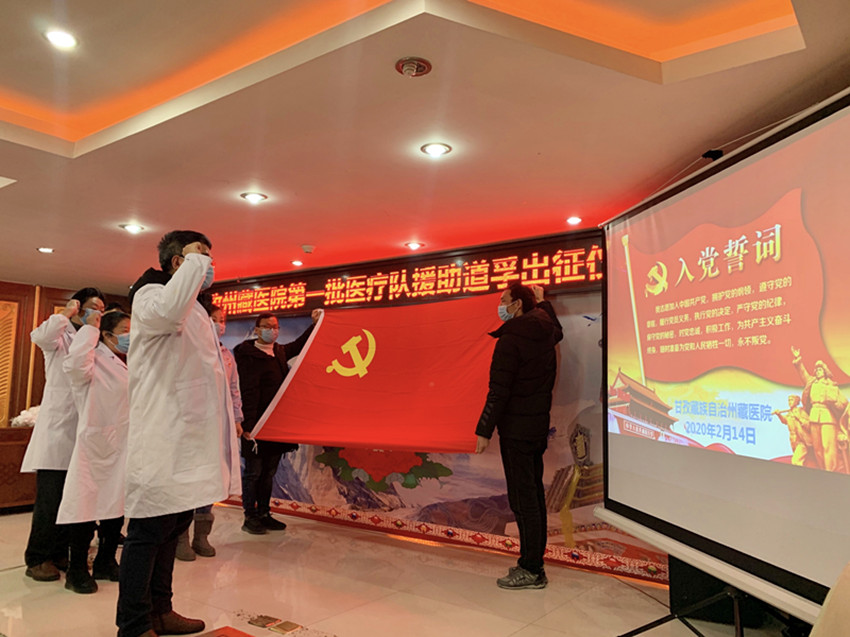 事實(shí)證明,州藏醫(yī)院的擔(dān)心和提前準(zhǔn)備完全是必要的。2020年2月,道孚縣爆發(fā)疫情,全縣進(jìn)入管控狀態(tài)??粗约旱募亦l(xiāng)發(fā)生疫情,州藏醫(yī)院的醫(yī)護(hù)人員心急如焚。盡管對(duì)這未知的病毒心中沒(méi)底,但沒(méi)人退縮,全院上下皆積極請(qǐng)戰(zhàn)。在醫(yī)院黨委再次申請(qǐng)下,州抗疫指揮部研究同意了藏醫(yī)院參與抗疫工作,2月14日,在時(shí)任副院長(zhǎng)、主任藏醫(yī)師江吉村的帶領(lǐng)下,藏醫(yī)診療隊(duì)奔赴道孚。這是新中國(guó)成立以來(lái),藏醫(yī)首次參加的大型抗疫阻擊戰(zhàn)。