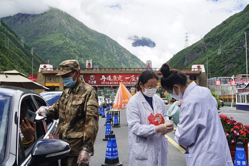 地震又遇疫情。大量救援隊(duì)進(jìn)入災(zāi)區(qū),加大了當(dāng)?shù)匾咔榉揽氐膲毫Α闇p輕當(dāng)?shù)胤酪邏毫Γ?月6日,州藏醫(yī)院再次抽派8名醫(yī)務(wù)人員組成兩支核酸采樣隊(duì),奔赴瀘定縣得妥鎮(zhèn)火線支援疫情防控工作。核酸采樣隊(duì)到達(dá)目的地后,在應(yīng)急指揮部的安排下,迅速投入到了緊張有序的采樣工作中。截止撤離時(shí),共為當(dāng)?shù)亻_(kāi)展了1萬(wàn)余人次的核酸采樣。