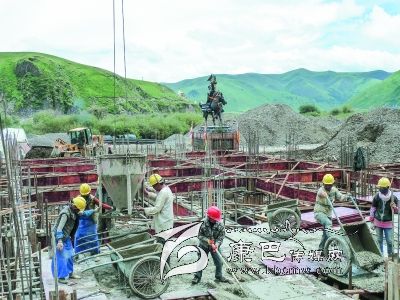7月的德格縣阿須鄉(xiāng),時(shí)逢草原上最美的季節(jié),藍(lán)天白云、燦爛的陽光、綠色的草地上開滿了各色的鮮花,在格薩爾紀(jì)念堂旁邊,在格薩爾銅像腳下,是一幅忙碌的建設(shè)景象,在機(jī)器的轟鳴聲里,工人們正忙著大樓基礎(chǔ)層的建設(shè),這記者來到是德格縣格薩爾展覽館的建設(shè)工地時(shí)看到的景象。