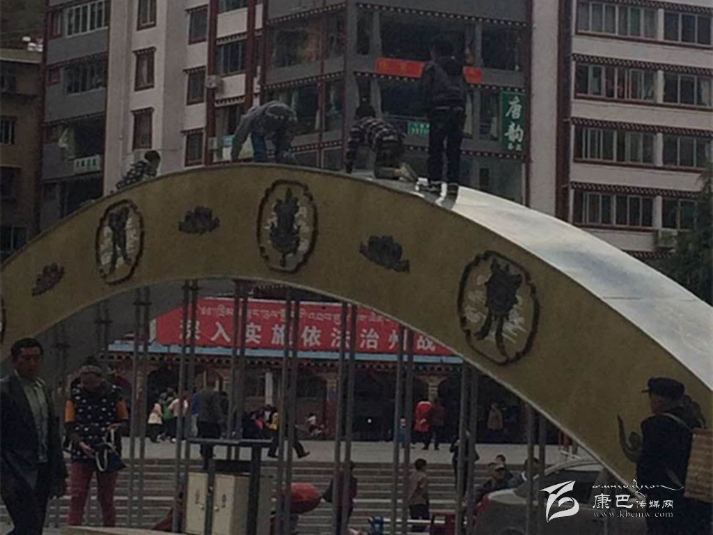 在康定劇場(chǎng)前面的廣場(chǎng)上,每天傍晚,廣場(chǎng)舞大叔大媽都準(zhǔn)時(shí)前來(lái)報(bào)到。孩子們則在人群中玩耍。7歲的陽(yáng)陽(yáng)(化名)被奶奶帶著來(lái)到廣場(chǎng)上學(xué)習(xí)滑旱冰,滑著滑著小伙伴出現(xiàn)了。脫掉冰鞋,陽(yáng)陽(yáng)和大家一起開始在“康定情歌”歌譜造型的漢白玉雕塑上攀爬。奶奶則在廣場(chǎng)另一端和老友擺龍門陣,根本無(wú)暇顧及。“征服”了“康定情歌”以后,陽(yáng)陽(yáng)和伙伴們繼續(xù)“征服”康定劇場(chǎng)臺(tái)階前的大塊漢白玉雕塑。“趕快下去,這些娃娃真沒(méi)得家教!”一位愛(ài)管閑事的中年人制止了孩子們的“不文明”行為。他離開后,陽(yáng)陽(yáng)再次奔向漢白玉雕塑……