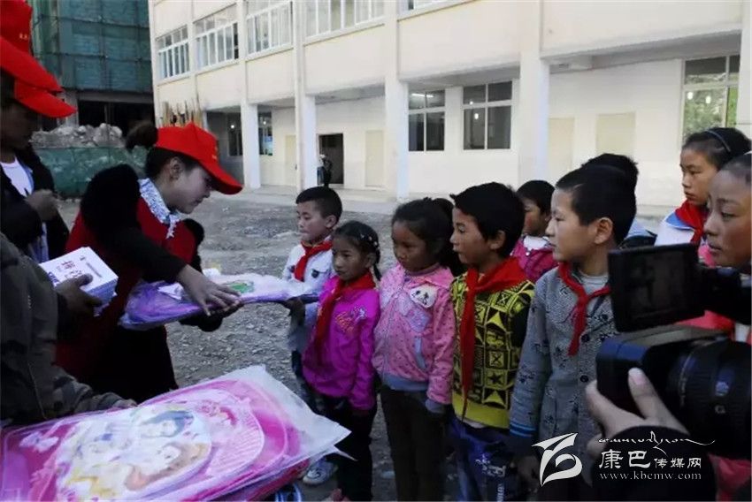 2014年9月1日德格縣青年志愿者服務(wù)隊(duì)雪梅等成員為貧困青少年送去學(xué)習(xí)包作為開學(xué)禮物。