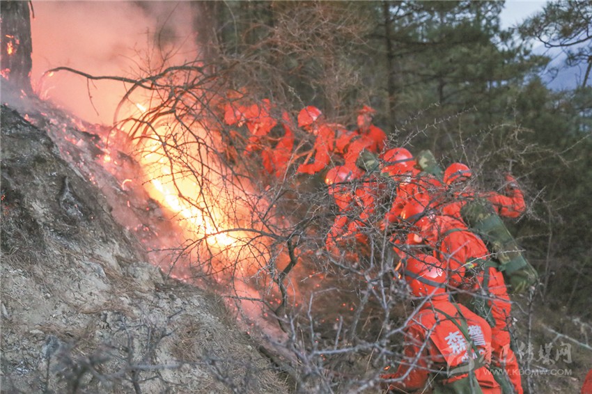 火災(zāi)發(fā)生后,武警甘孜森林支隊(duì)道孚大隊(duì)40名官兵迅速趕赴現(xiàn)場展開滅火工作。高原的夜晚氣溫雖然降至-14℃,但凜冽的寒風(fēng)卻讓林火肆意蔓延,撲火官兵跟著火頭一路追擊,力阻火場面積擴(kuò)大。19日凌晨,滅火官兵抓住清晨風(fēng)力小、氣溫低的有利條件,向火魔發(fā)起進(jìn)攻,殲火頭、撲余火、滅煙點(diǎn)、清火線,2小時30分鐘后完成了南線滅火作戰(zhàn)任務(wù)。隨后,道孚森林大隊(duì)官兵兵分兩路幫助地方專業(yè)滅火隊(duì)和撲火群眾清理煙點(diǎn)、站桿倒木。一路采取接力方式,采用水箱將山脊一處水源不間斷傳遞至火場一線,清理煙點(diǎn);另一路運(yùn)用油鋸、砍刀、組合工具對任務(wù)區(qū)戰(zhàn)桿倒木進(jìn)行清理。