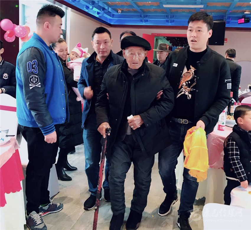 3月5日,在瀘定縣烹壩鄉(xiāng)十里香酒店,按照當(dāng)?shù)貍鹘y(tǒng),王瑞生的兒孫們提前為他隆重過(guò)百歲大壽。雖然已近百歲高齡,但王瑞生精神矍鑠,思路清晰,談吐自如,面色紅潤(rùn)的他身著簡(jiǎn)樸,胸前始終戴著2016年由中共中央、中央軍委頒發(fā)的“中國(guó)工農(nóng)紅軍長(zhǎng)征勝利80周年紀(jì)念章”,接受親友們的祝福?!白D】甸L(zhǎng)壽,開(kāi)開(kāi)心心”。親人們不絕于耳的祝福,老人心滿意足,笑容滿面?!昂?,好,我的家人團(tuán)圓和睦,家庭幸福,是我最大的心愿。”如今,老人已是四世同堂,家人濟(jì)濟(jì)一堂,親情流淌,老人幸福開(kāi)懷。