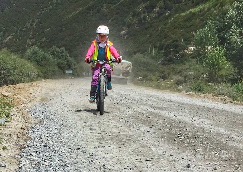 “‘拖兒帶女’騎行進藏本不多見,更別提‘一個年僅8歲的小女孩,騎折疊車挑戰(zhàn)川藏線2050公里了!’就我目前所知,這恐怕是國道318線上的頭一個!”看到女兒緊隨其后,不多時也順利抵達觀景臺,劉志勇言語間頗有些自豪地介紹著——這位川藏線上迄今年齡最小的女性獨立騎行者。