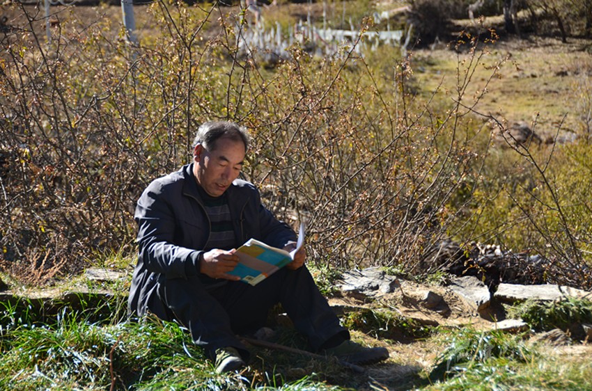 那一年,教室的過道里燃起熊熊的炭火,孩子們坐在溫暖的教室里,那郎朗的讀書聲久久縈繞在藏寨的上空。就這樣,復(fù)式班級的教學(xué)工作他一干就是十余年,后來,村里的兩位高中畢業(yè)生也走進長納村小,長納村小的師資力量得到了補充。那一年,長納村小成立第一個教研組,阿布里擔(dān)任語文、數(shù)學(xué)教研組組長,在教研會議上,他將自己的教學(xué)經(jīng)驗無私傳授給兩位代課教師。