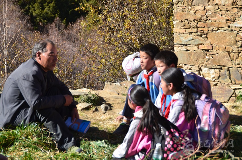 雖然代課教師的工資從當(dāng)年的每月200元漲到了現(xiàn)在每月800元,然而在以市場經(jīng)濟為主體的社會里,800元工資的人群屬于低收入群體。盡管如此,阿布里老師依然早出晚歸,在那條他閉上眼都能走的小徑上來回奔波,依舊嘔心瀝血教書育人,那郎朗的讀書聲在藏寨的上空久久回蕩。每天上學(xué)放學(xué)路上,孩童們在阿布里老師的帶領(lǐng)下,在小徑上排著整齊的隊伍,撒下一路歌聲一路歡笑。