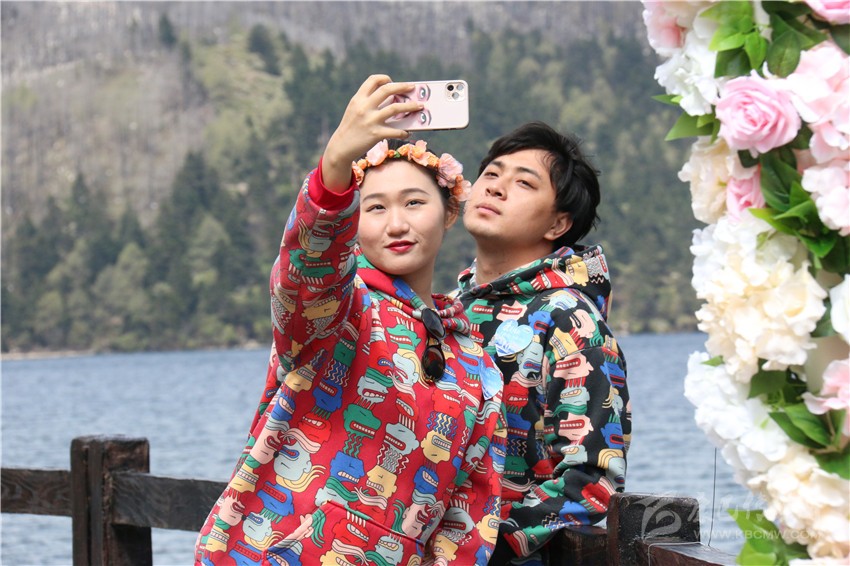 “今年已走過20年婚姻歲月?!眮碜猿啥嫉母姘渍哐詵|和王艷是通過網絡招募的情侶。他們說:“今天很榮幸來參加這個活動,木格措很美,在今天這個特殊時刻,來到這里打卡,將成為我們婚姻生活里美好的回憶?!?/p>
