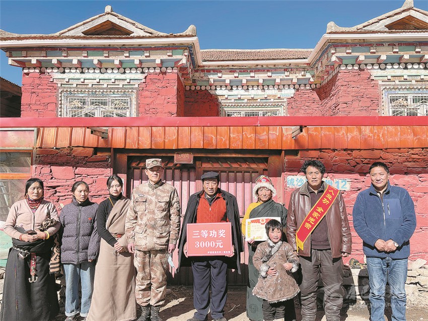 圖為慰問組一行向瑪桑父母送上三等功喜報(bào)和慰問金。