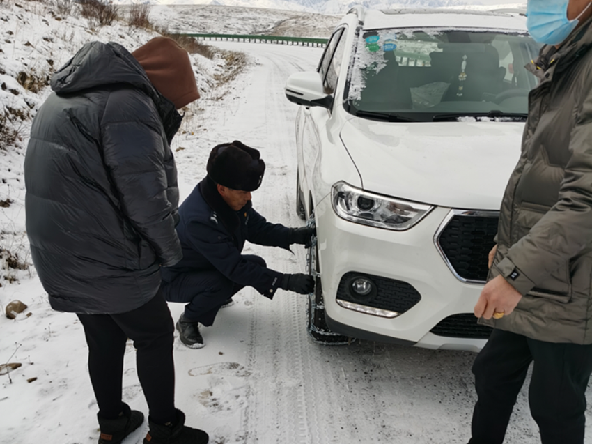 一西多吉幫助過(guò)路車輛掛鏈條。