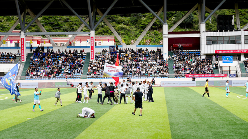 比賽進(jìn)入下半場,雙方一上場便持續(xù)強(qiáng)勁攻勢,比賽至第52分鐘時(shí),甘肅甘南隊(duì)成功避開四川阿壩隊(duì)再次射門進(jìn)球又得一分,在全場喝彩聲中,甘肅甘南隊(duì)全體隊(duì)員士氣高漲,乘勝追擊。比賽至65分鐘,甘南隊(duì)再進(jìn)一球,比分?jǐn)U大至3:0。此時(shí)四川阿壩隊(duì)迅速調(diào)整狀態(tài)和戰(zhàn)術(shù),發(fā)起強(qiáng)勢進(jìn)攻,在比賽進(jìn)行至93分鐘時(shí),憑借一個(gè)任意球破門得分。比賽得分最終鎖定在3:1,甘肅甘南隊(duì)贏得比賽勝利。