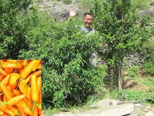 特點(diǎn):因樹干木質(zhì)化而形成小樹俗稱“樹子海椒”,是多年生植物。最初隨著藏傳佛教的傳入從印度引進(jìn),后經(jīng)當(dāng)?shù)靥厥獾牡乩砦恢煤蜌夂颦h(huán)境長期栽培選育出的一種原始的地方辣椒品種。該品種頭年以種子育苗移栽,當(dāng)年開花結(jié)果,可以露地越冬,經(jīng)冬不死,每年春季又可發(fā)生新芽開花結(jié)果,植株高可達(dá)數(shù)米,葉片披針形,果實(shí)短角形,頂端稍尖,成熟后果實(shí)金黃鮮亮,其椒果肉薄、辣味濃,可開胃健脾,曾入藏藥,而其樹壽命可長達(dá)上百年。