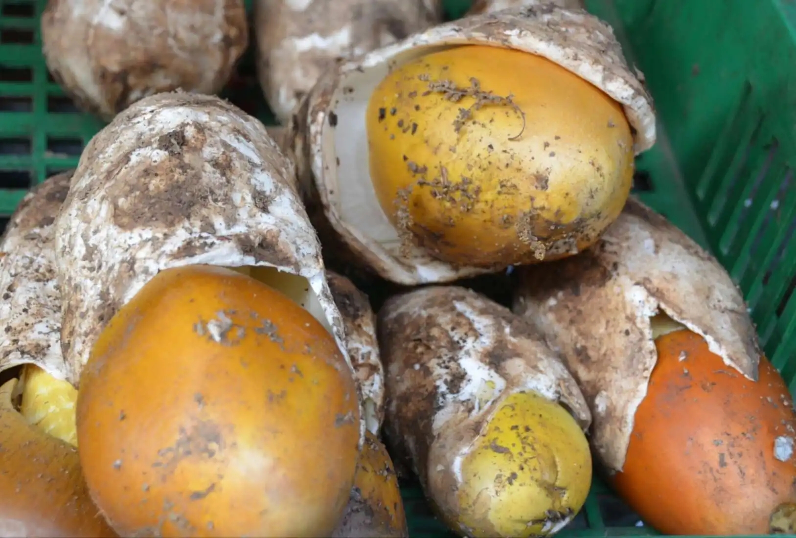 雞蛋菌,又稱橙蓋傘,橙蓋鵝膏菌,黃羅傘,白橙蓋鵝膏菌。因像極了雞蛋而得名。子實(shí)體大型,菌蓋形成初期卵圓形至鐘形,后漸平展,中部稍凸起,鮮橙黃色至桔紅色,光滑,粘,邊緣具明條紋。菌肉白色,較厚,菌把圓柱形,淡黃色。菌托大,苞狀,白色,傘未張開時包裹在白色的菌托里很萌,所以有了雞蛋菌的別稱。