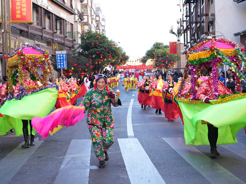 隨著悠揚的弦胡聲響起,備受期待的“千人弦子鍋莊”震撼上演。來自夏邛鎮(zhèn)、地巫鎮(zhèn)、竹巴龍鄉(xiāng)等多個鄉(xiāng)鎮(zhèn)的群眾演員們輪番上場,他們身著巴塘傳統(tǒng)民族服飾,踩著節(jié)拍不斷律動,含胸、顫膝、點踢、三步一撩,一步一靠,婀娜輕盈如行云流水;半圓、橢圓、長圓與肢體撩動飛舞,一個個深情的圓意蘊廣遠,體現(xiàn)著天人合一的動態(tài)美。不少游客群眾被吸引加入其中,一圈圈、一層層,大家縱情歌舞、歡騰跳躍,沉浸在非遺盛況中。在觀看演出后,來自河南的游客劉女士內(nèi)心十分雀躍:“我今天專門過來看表演,現(xiàn)場非常熱鬧,每一個節(jié)目都非常精彩,極具民族特色和觀賞性,讓我大飽眼福。民族的就是世界的,我們國家有這么多優(yōu)秀燦爛的民族文化,這是我們的驕傲,要更好地傳承和發(fā)揚好。今天的活動非常有意義,所有參演人員十分投入、熱情滿滿,從載歌載舞中看到了巴塘群眾對幸福生活的表達,感受到了巴塘濃濃的年味?!币磺右磺F(xiàn)場歌舞如潮,歡呼聲叫好聲此起彼伏,匯成一片歡樂的海洋。此次弦子鍋莊展演在保持傳統(tǒng)弦子鍋莊舞曲風格的基礎(chǔ)上,還創(chuàng)造性地融入了民族團結(jié)、群眾生活等內(nèi)容,用鄉(xiāng)音唱出群眾心中的喜悅,用舞蹈跳出對美好生活的向往。在傳承保護民族文化的同時,又賦予弦子鍋莊舞新時代文化內(nèi)涵,充分展現(xiàn)巴塘中國民間弦子之鄉(xiāng)深厚的歷史文化和多彩多姿的民俗風情。